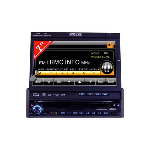 Takara CDV1170 Car - Screen Size: 7 inch, Radio, 4 Channels, Video: DVD, MPEG-4, Audio: Audio CD, MP3, Media: DVD Video, CD (Audio), CD-R, CD-RW , New product sold by a professional on-site Amazon.fr - DVD player compatible MPEG4/MP3/CDR/CDRW/CD AudioÉcran color 7 "(17.7 cm) high resolution motorized with angle adjustment and axeProcesseur Figure 32 bitMécanisme SLIM LINE (1.7 cm) Dual display (open-closed position) Mini USB / SD Card / Aux VideoConnect iPodFM Audio / Stereo YEARS EON PTY ​​stationsRéglage automatic search volume, bass, treble, balance, faderFaçade theft détachableEntrée to connect a video camera recultélécommande multifonctionsSortie preamp for connecting a video subwooferSortie moniteurEntrée amplificateurEntrée RCA audio-video to connect a source externe240 watt (4 x 60 w)
